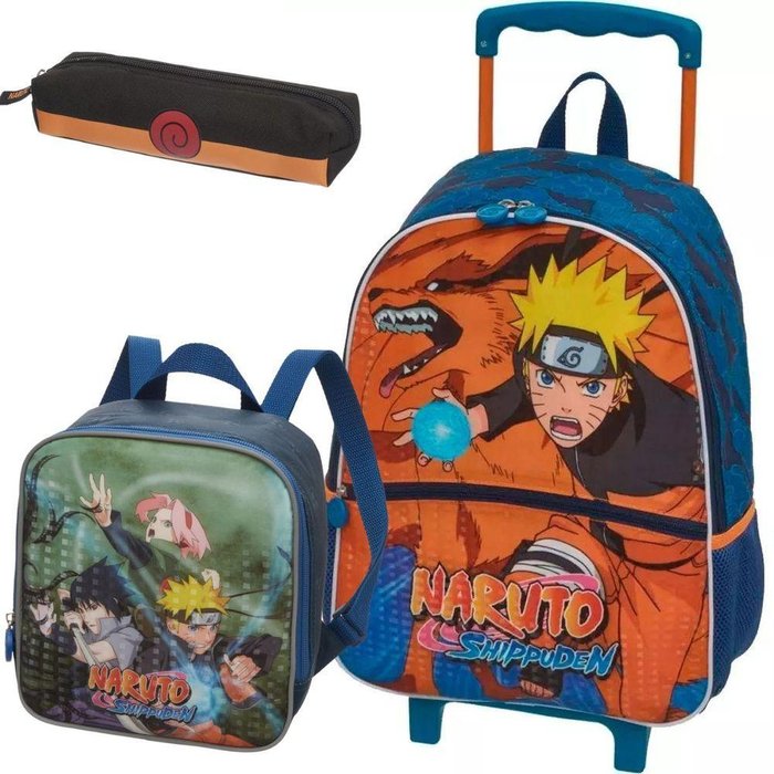 Kit Mochila Rodinha Lancheira Estojo Escolar Infanttil Boruto Menino Naruto Pacific