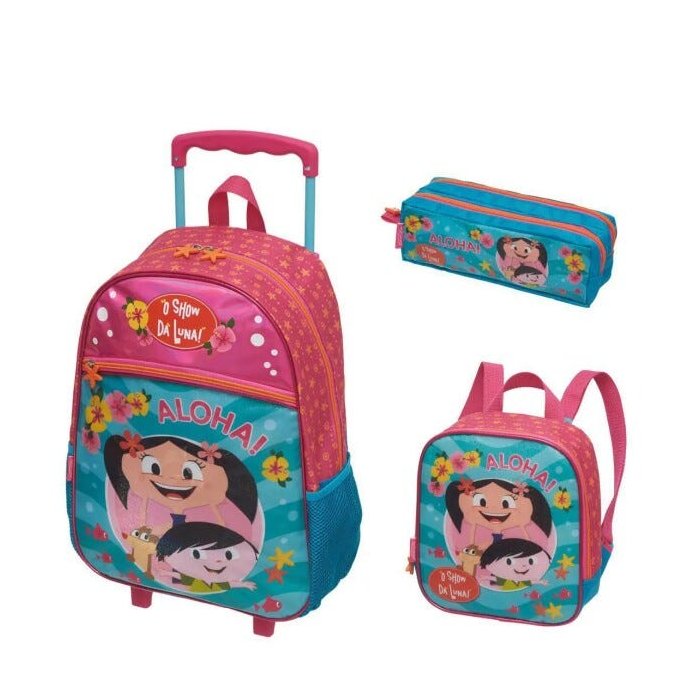 Informações do Kit: Kit Mochila com Rodinhas O Show da Luna Aloha com Lancheira e Estojo Duplo - Pacific
