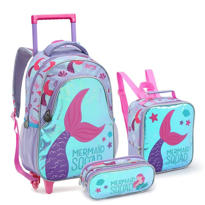 Kit Mochila Rodinhas Infantil Mermaid Sereia Lançamento Seanite Ser41448