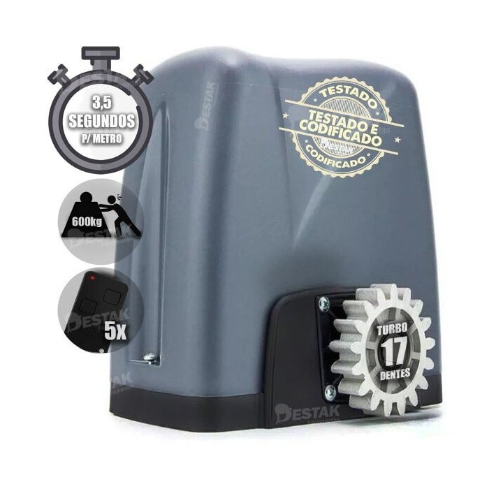 - Potência do motor de 1/4hp (Para portões de até 600kg que estejam deslizando suavemente);