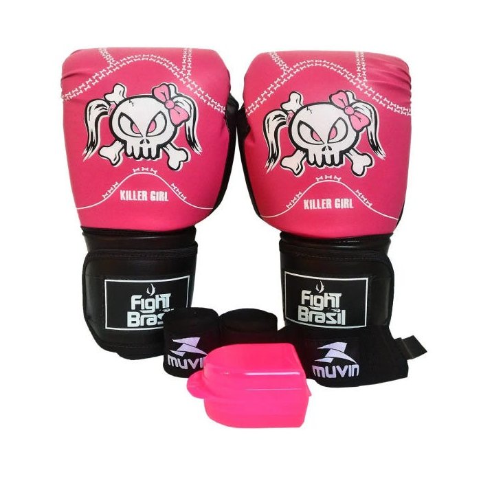 Kit Muay Thai Boxe Luva Bandagens Bucal 14 Oz Fight Brasil Killer Girl