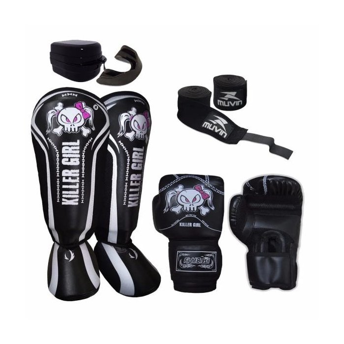 Kit Muay Thai Luva 12 Oz Caneleira M Bandagens Bucal Fight Brasil Killer Girl