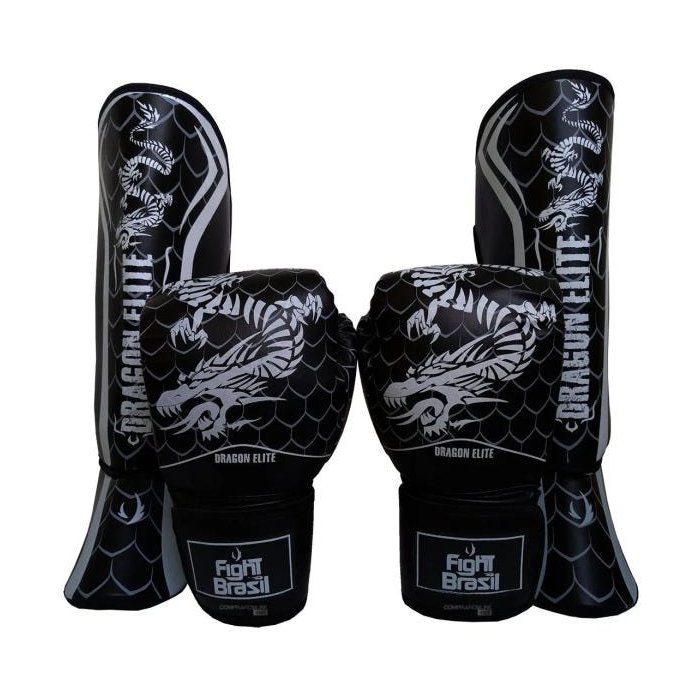 Kit Para Muay Thai Luva 14 Oz Caneleira M Fight Brasil Dragon Elite.