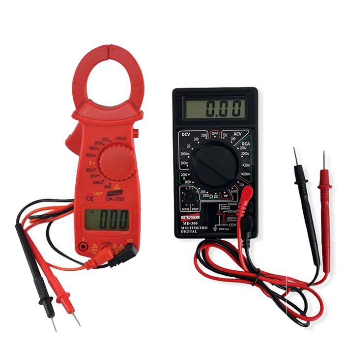 Kit Multímetro Digital Para Tensão Corrente Cat Iii 1000v Md-300 + Alicate Volt Amperímetro Portátil