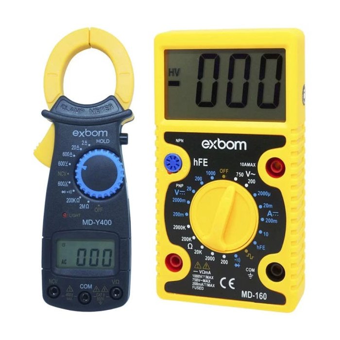 Kit Multímetro Digital Portátil MD-160 + Alicate Amperímetro Digital MD-Y400 Profissional Exbom