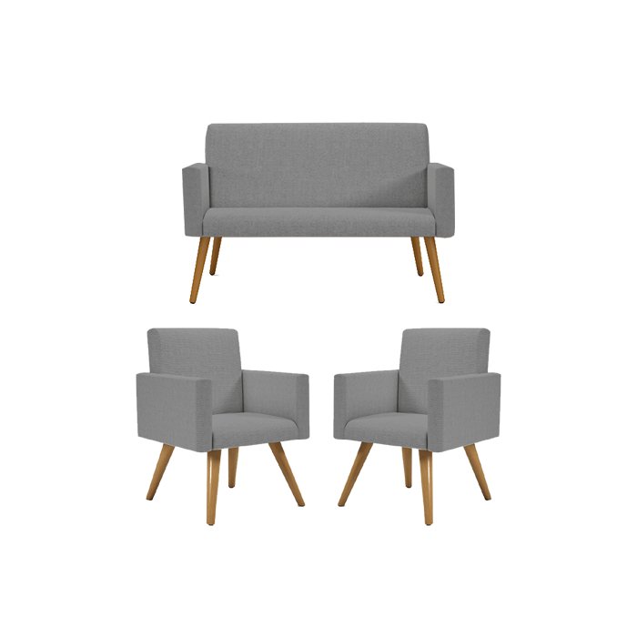 Kit Namoradeira + 02 Poltronas Decorativas Linho Cor:Linho Grafite