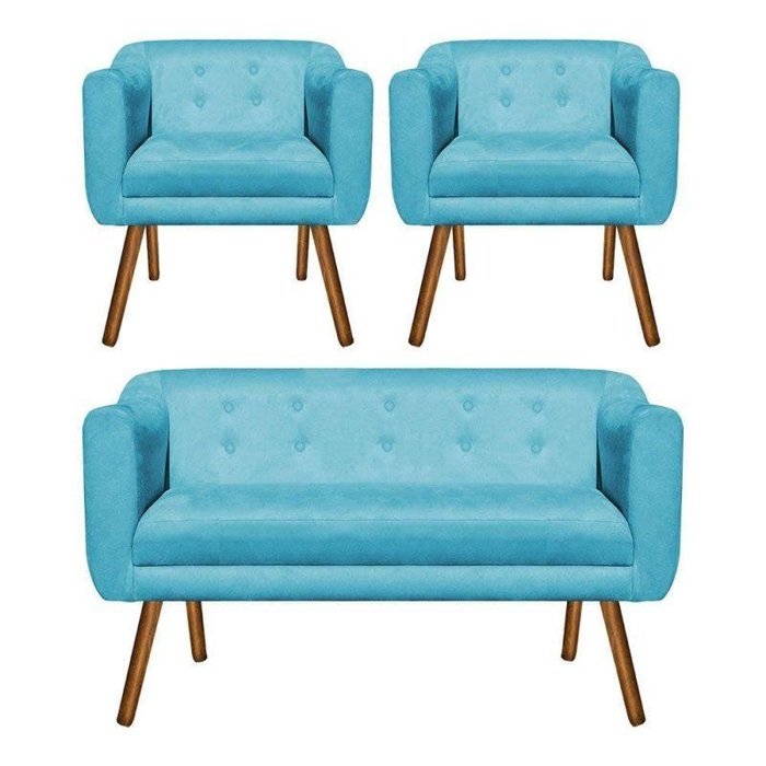 Kit Namoradeira 2 Lugares e 02 Poltronas Julia Suede Azul Turquesa - D'Rossi