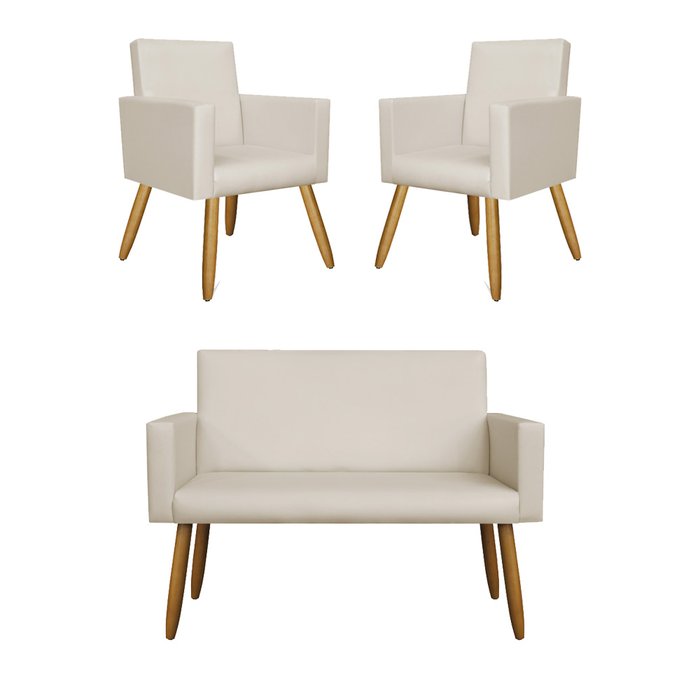 Kit Namoradeira + 2 Poltronas Decorativas Courino Balaqui Cor:Courino Bege