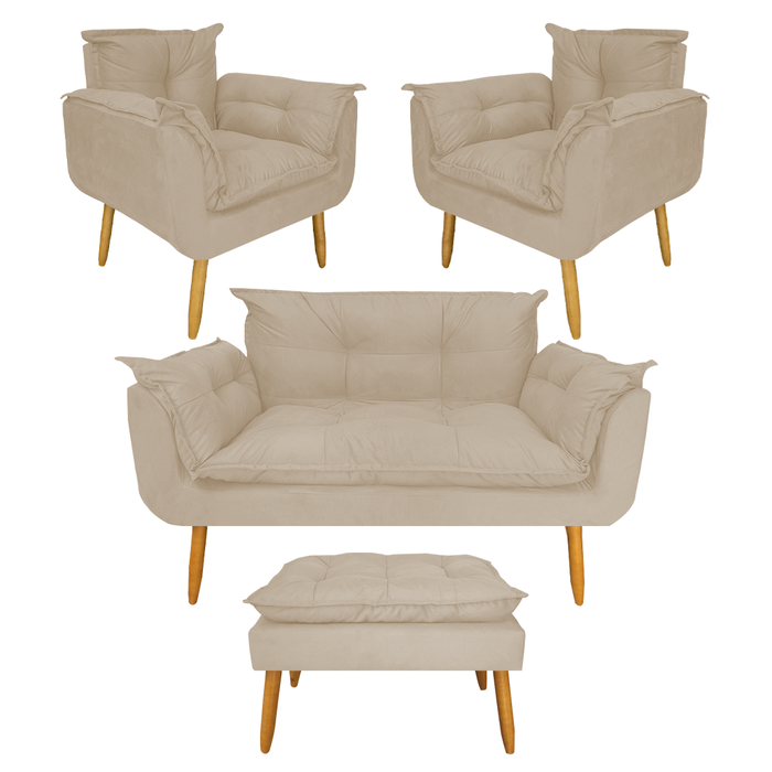 Kit Namoradeira + 2 Poltronas Opala + 1 Puff Amamentação Sala Decorativa Quarto Bege