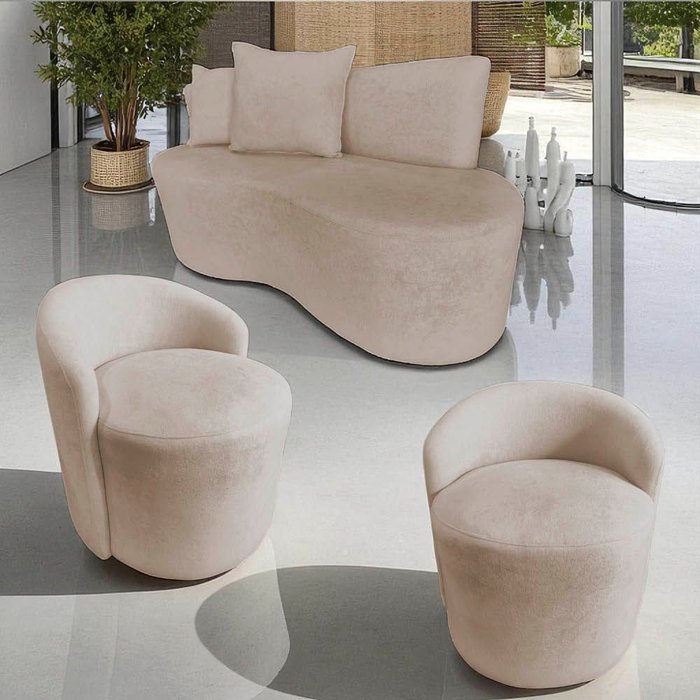 Kit Namoradeira + 2 Poltronas Yara Orgânica Veludo Bege