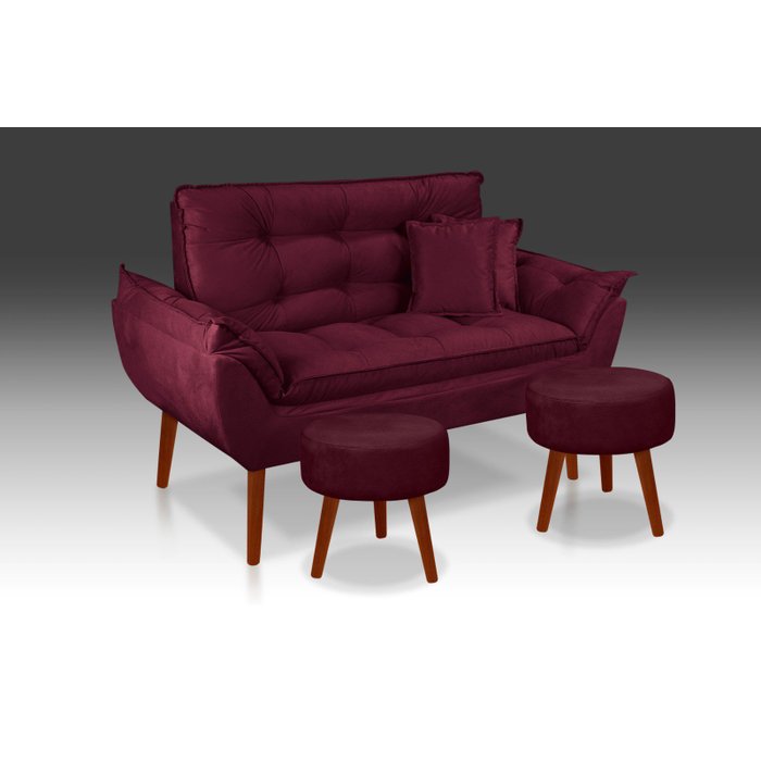 Kit Namoradeira+ 2 Puff Redondo+ 2 Almofadas Suede Bordo -Rv Decora
