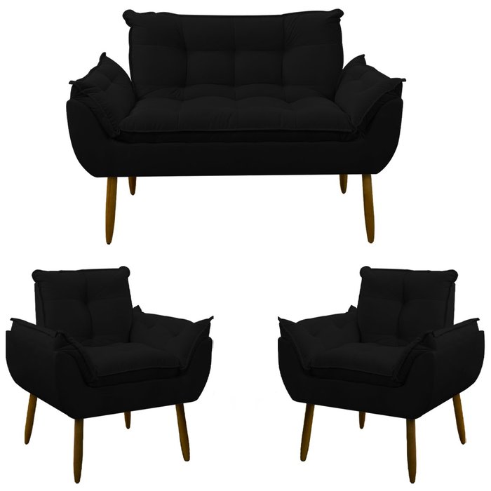 Kit Namoradeira Decorativa Opala SuedeO nosso Kit Namoradeira Decorativa Opala é ideal para Sala e Quarto é super confortável com um design inovador que vai deixar seu ambiente ainda mas belo, tem uma estrutura reforçada, feita em madeira de eucalipto, além de ser um charme a mais para o ambiente.Especificações:Estrutura em madeira reflorestada de eucalipto ou pinus, compensado ou MDF;Acabamento em tecidoFibra- Percintas Latex;- Tecido Suede Liso;- Design inovador;- Acompanha manual e todos os acessórios para montagem;- Garantia de 3 meses para eventuais defeitos de fabricação;Dimensões do Produto (L x A x P):Altura: 88 CmLargura: 134 CmProfundidade: 68 CmRevestimento:Suede.Peso: 30 Kg ( Namoradeira )Peso: 15 kg ( Cada poltrona )Peso que suporta: 115 kgMontagem:O kit Namoradeira Decorativo Opala vai montado, ou seja, não necessita de montagem é necessário somente acoplar o Pé na base.