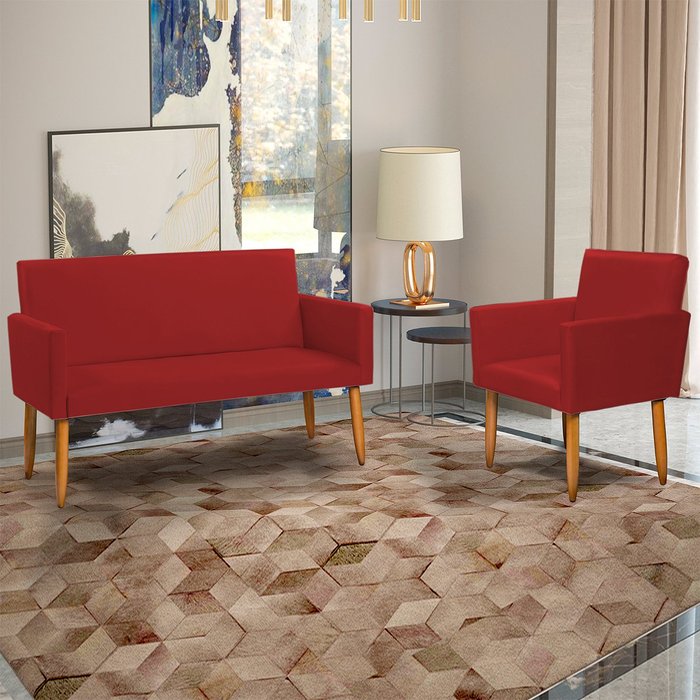 Kit Namoradeira Decorativa Para Sala Nina + Poltrona Para Recepção Manicure Suede