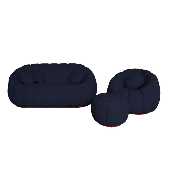 Kit Namoradeira Mais Poltrona e Puff Concha Fixo Boucle - Estopar Boucle Azul Marinho