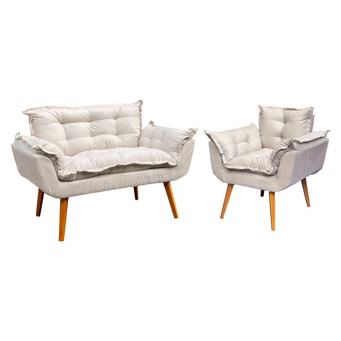 Sua estrutura é fabricada em madeira maciça e eucalipto, garantindo resistência e durabilidade. O estofamento em tecido suede oferece um toque macio e refinado, enquanto o preenchimento em fibra siliconada proporciona extremo conforto. A namoradeira conta com pés de madeira na tonalidade castanho, agregando charme e estabilidade, enquanto a poltrona se destaca pelos pés em formato trapézio, conferindo um toque moderno. Com qualidade excepcional, esse kit transforma qualquer espaço em um ambiente aconchegante e sofisticado.