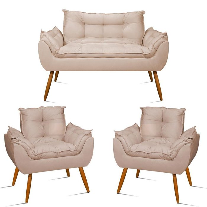 Kit Namoradeira Opala Sala Quarto + 02 Poltrona Balaqui Decor Cor:bege Bege A Namoradeira Opala traz muita segurança e conforto para seu ambiente. Sua estrutura é 100% em madeira Eucalipto e seu design sofisticado conta com acabamento em Suede.