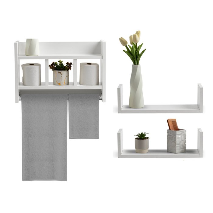 Kit Nicho Porta Toalha Organizador Banheiro e 2 Prateleiras