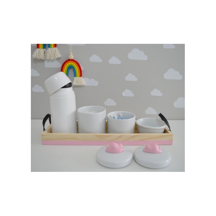 Kit Nuvem Higiene Porcelanas Bandeja Pinus Faixa Color K035 - Rosa