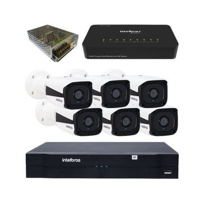 KIT NVD Intelbras IP + 6 Câmeras VIP 1120 B + Switch e Acessórios