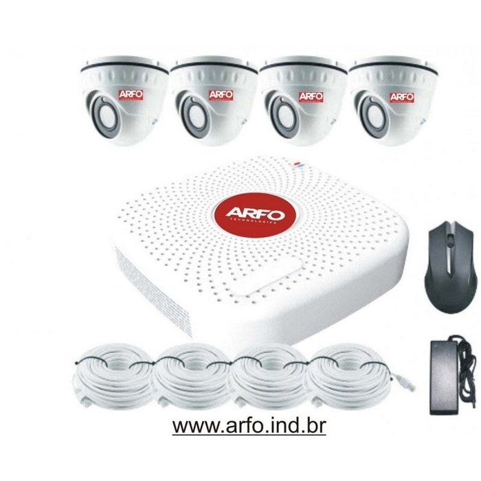 | Itens Inclusos | NVR POE ARFO, 4 cameras dome s100, manual de instruções, Fonte de energia nvr, 4 cabos poe 100 metros, mouse |