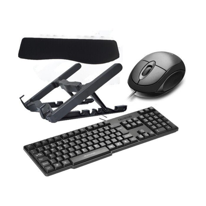 Kit Office 2 - Suporte P/Notebook, Teclado e Mouse com Fio USB e Apoio de Pulso P/Teclado