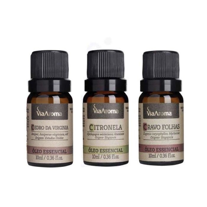 KIT ÓLEO ESSENCIAL VIA AROMA 3 X 10 ML: 1 OE CEDRO VIRGÍNIA + 1 OE CITRONELA + 1 OE CRAVO
