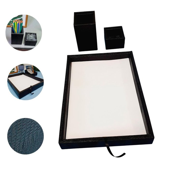 Kit Organizador 3 Peças Bandeja Porta Folha A4 Sulfite Porta Objetos Lápis Clipes Sintético