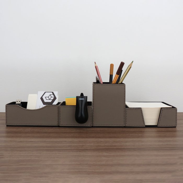 Kit Organizador de Mesa Escritório em Corino Cor Fendi 4 Pçs fendi