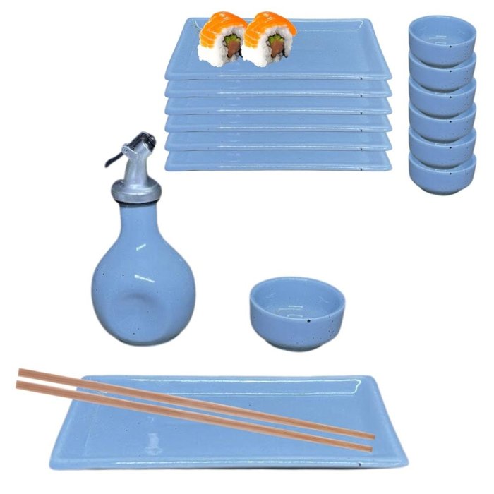 Kit Oriental Azul para Sushi 2 Pessoas Completo e Pratico Azul Mesclado