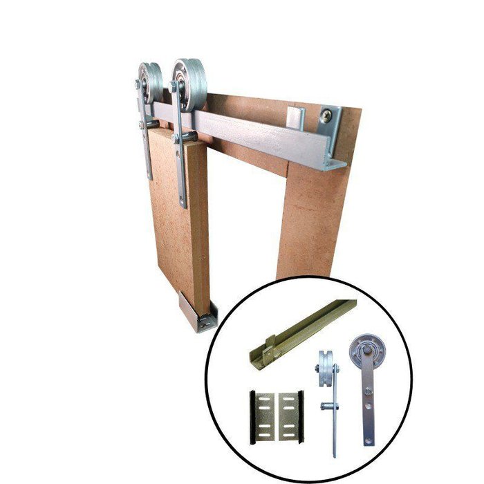 Os kits de instalação tipo porta celeiro da marca ALFER, é forma mais fácil e barata para se instalar uma porta que fique com as roldanas aparentes, dando um visual rústico e inovador ao seu ambiente.