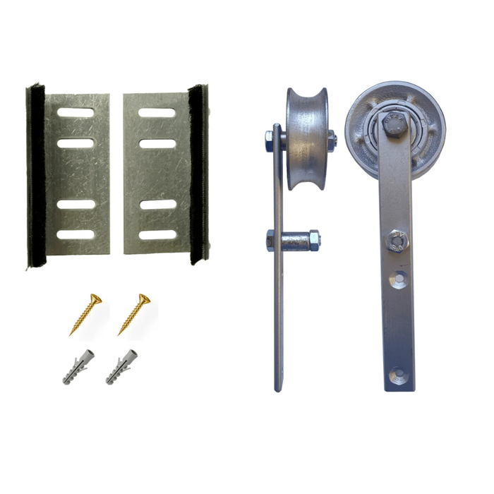 Os kits de instalação tipo porta celeiro da marca ALFER, é forma mais fácil e barata para se instalar uma porta que fique com as roldanas aparentes, dando um visual rústico e inovador ao seu ambiente.
