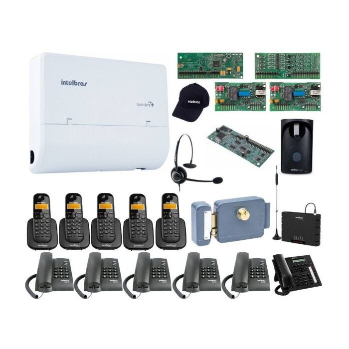 Conteudo da Embalagem: 1 Unidade: Microcentral telefonia fixa e sem Fio Modulare + Intelbras (1 central telefônica, 1 kit para fixação e 1 guia rápido) 2 Unidades: Placa Tronco (1TR) Modulare Mais Intelbras 2 Unidade: placa Ramal (4RM) Modulare Mais Intelbras 1 Unidade: Placa Disa Modulare Mais Intelbras 1 Unidade: Placa Dect Para 5 Ramais sem Fio Intelbras 5 Unidades: Ramal sem Fio TS 3111 Intelbras 1 Unidade: Terminal Inteligente TI 830 I Intelbras 1 Unidade: Headset Tiara Monoauricular CHS 55 Intelbras 1 Unidade: Interface Celular ITC 4100 Intelbras ( Chip celular Não incluso ) 1 Unidade: Porteiro Eletronico XPE 1001 PLUS Intelbras 1 Unidade: Fechadura Eletrica Cilindro Fixo FX2000 Intelbras ( Fonte Não inclusa ) 5 Unidades: Telefone Pleno Preto intelbras 1 Unidade Boné em Brim ou Microfibra com regulador em velcro Intelbras. OBS: a central sai de fabrica equipada com placa para 2 linhas e 4 ramais, nesse Kit Esta Equipada com Placas Para 4 Linhas 8 Ramais incluindo placa Dect para 5 Ramais sem Fio e placa Disa par atendimento automatico. As microcentrais de telefonia Conecta + e Modulare + são projetadas com alta tecnologia para garantir máxima qualidade na expansão ou profissionalização da comunicação. Equipadas com processadores modernos, capazes de executar todas as facilidades de maneira rápida e confiável, são ideais para micro e pequenas empresas. Tudo que você esperava de uma central e muito mais. Mobilidade Mais inovação, tecnologia e possibilidades para sua comunicação. Com tecnologia sem Fio DECT através da placa acessório é possível ampliar a capacidade das centrais para mais 5 ramais sem fio. Através da Placa ramal sem Fio (DECT). Economia Através de funções como seleção automática de linhas, ramal econômico e bloqueio do recebimento de chamadas a cobrar, é possível reduzir o valor da conta telefônica. Já a possibilidade de ampliar o numero de ramais sem Fio diminui os investimentos em infraestrutura, como canaletas, fios, conectores e pontos de telefonia. Qualidade Além de todas as facilidades já conhecidas nas microcentrais Conecta e Modulare i, líderes no segmento de microcentrais, ainda encontramos: » Identificação de chamadas automática e incorporada: sem necessidade de placa ou programações » Seleção automática de linhas e comunicação incorporadas » Atualização de firmware via pen drive » Atendimento automático DISA aprimorado » Envio de mensagens DISA via pen drive » Siga-me externo Instalação rápida por software O instalador faz todas as configurações pelo software em uma interface intuitiva. Muito mais rápido e fácil. Bilhetagem Fornece relatórios detalhados das chamadas quando o cliente quiser. Zonas de alarme O cliente escolhe duas zonas da empresa para instalar dispositivos de segurança. Tudo interligado nas centrais. Amplie negócios Indicada para escritórios, consultórios, escolas, pequenos comércios e microempresas que desejam expandir sua capacidade, profissionalizar a comunicação, reduzir os custos em chamadas ou encontrar meios alternativos para dispor seus Telefones. Sua instalação pode ser em mesa, parede (acompanha kit de fixação) ou bandeja para rack. Características Identificação de chamadas DTMF e FSK incorporada e automática (sem necessidade de placa ou programação) Ramais sem Fio através de tecnologia DECT2 Seleção automática de linhas incorporada Siga-me externo Programação simplificada via teclado telefônico Fonte de alimentação interna Bloqueio de recebimento de chamadas a cobrar Atualização de firmware via pen drive Bilhetagem Código particular Conferência Não perturbe