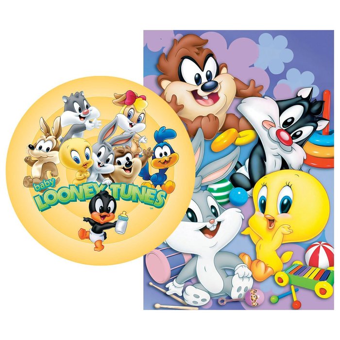 Kit Painéis Casado Redondo Retangular Tecido Festa Aniversário Baby Looney Tunes inove Adesivos Deco