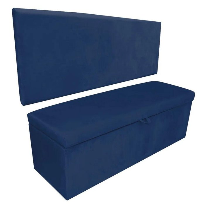 Kit Painel Cabeceira de Cama Box Solteiro com Recamier Ayumi 90 Cm Corino Azul Marinho Azul