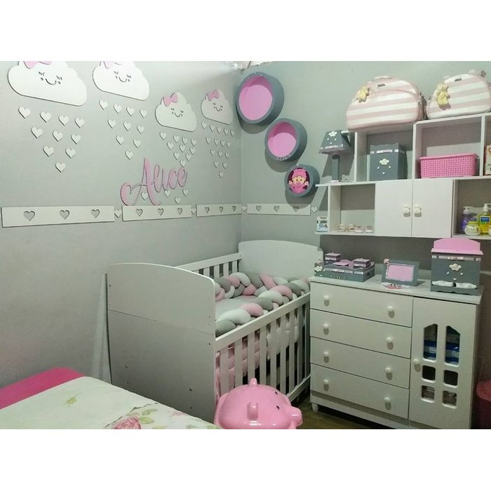 Kit Painel de Parede Completo 48 peças Nuvens Chuva de Amor Personalizado Menina - Nome e Lacinhos C