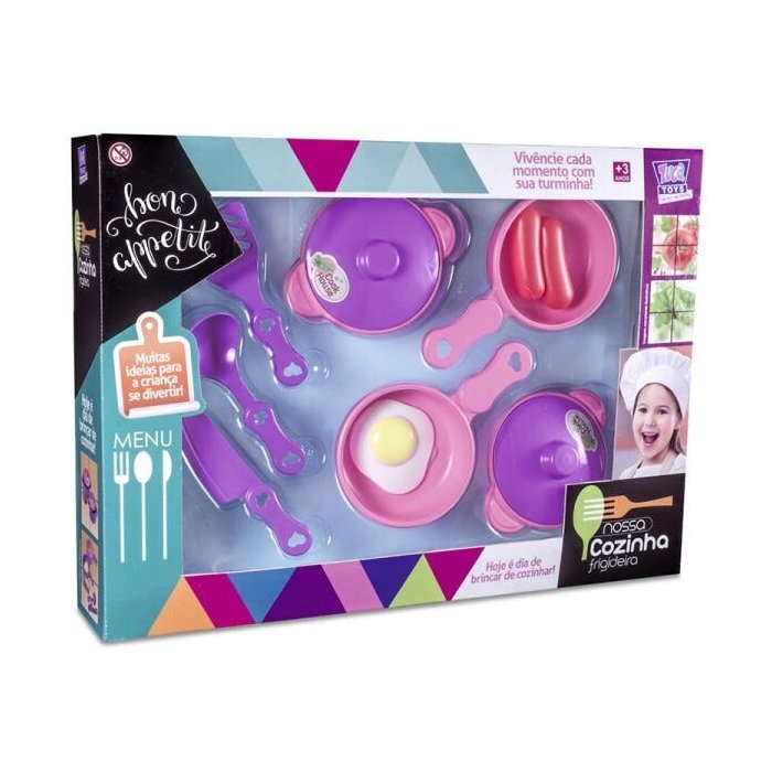 Kit Panela e Frigideira Infantil com 9 Peças para Cozinha Completa | Zuca Toys - Rosa