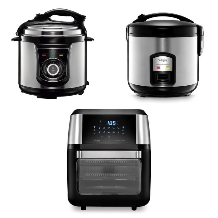 Kit Panela Pressão Elétrica, Panela de Arroz e Air Fryer Elgin 12 Litros 127v