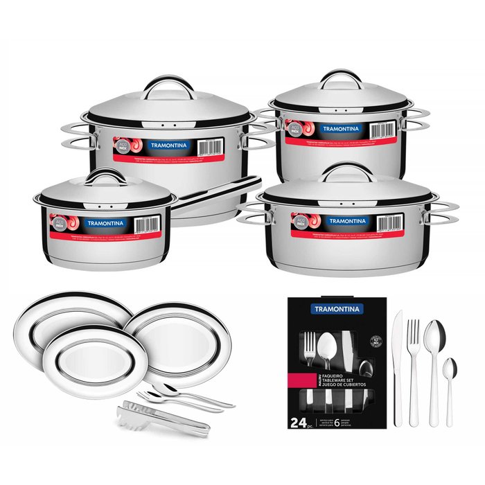 Kit Panelas Inox Tramontina com jogo de travessas e Faqueiro