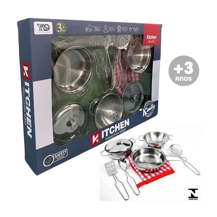 Kit Panelas Magicas Infantil AÇO Inoxidavel 9 Peças Cute TOYS