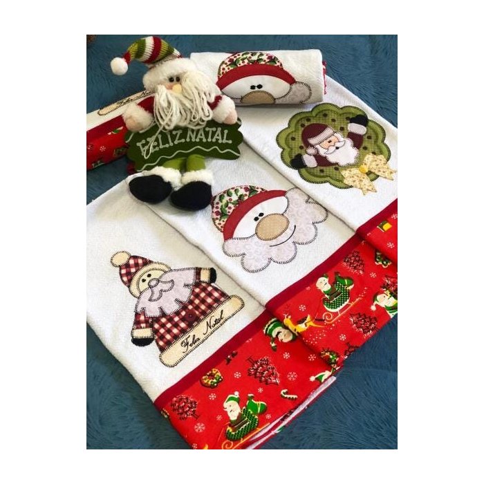 O Natal é a época mais gostosa do ano, na qual reencontramos os familiares e amigos. Para entrar no clima do natal, nada melhor do que os panos de prato personalizados com o tema! Além de lindos, eles irão deixar a sua cozinha ainda mais aconchegante. Os panos de prato são produzidos com tecido 100% algodão, gerando grande absorção de líquidos, ajudando a evitar danos e também prolongando a vida útil do produto. Contém: 03 Panos de prato bordado patchwork Tamanho de cada unidade; 68cm x 45cm; Informações adicionais: - Barrados com estampas diversas; - Alça para apoio; - Acabamento em bainha; - Tecido 100% algodão.
