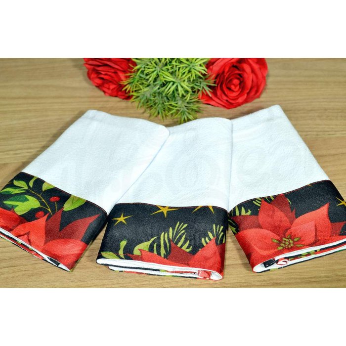 Kit Pano de Pratos 3 pçs - Flores Natalinas