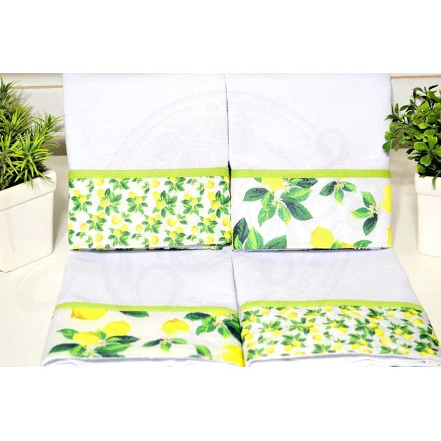 Kit Pano de Pratos 4 peças - Limão Siciliano Arte & Tear branco