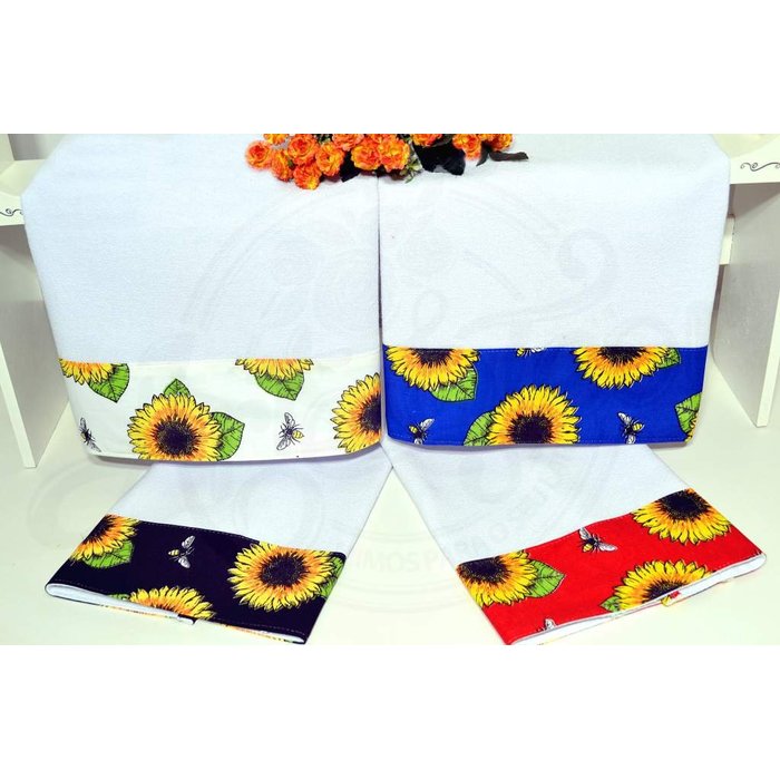 Kit Pano de Pratos com Barrado 4 peças - Girassol Arte & Tear Kit Pano de Prato com Barrado