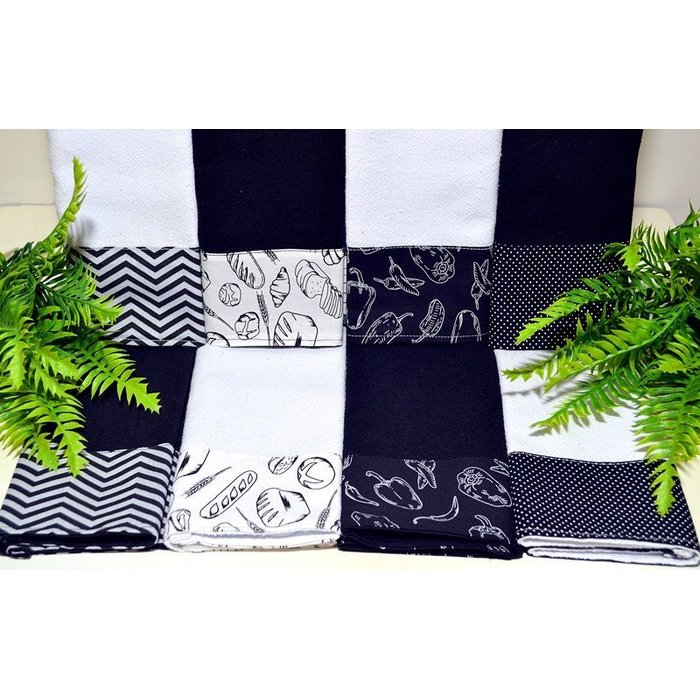 Kit Pano de Pratos com Barrado 8 Peças - Pandora branco e preto