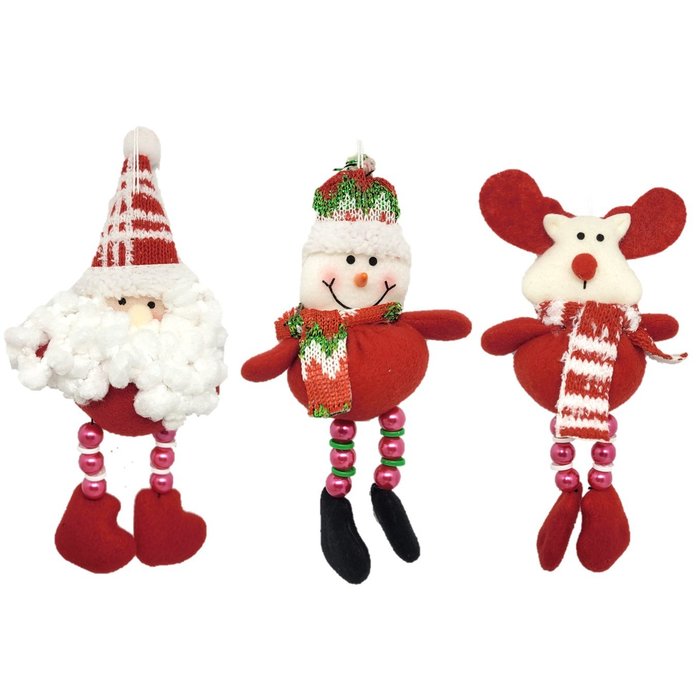 03 unidades Boneco Pendente Pelúcia Perna Miçanga 15cm (Papai Noel, Boneco de Neve e Rena)