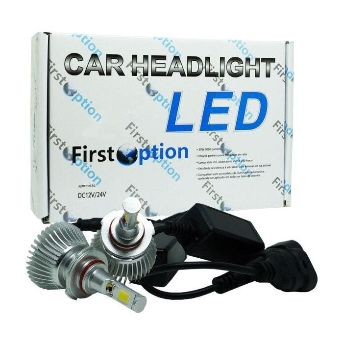 Kit Par Lâmpada Super Led Automotiva Farol Carro HB3 9005 6000 Lumens 12V 24V First Option 6000K