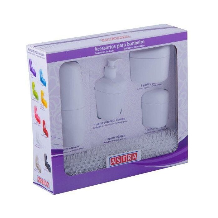 Kit para Bancada de Banheiro com Tapete 5 Peças Astra Branco