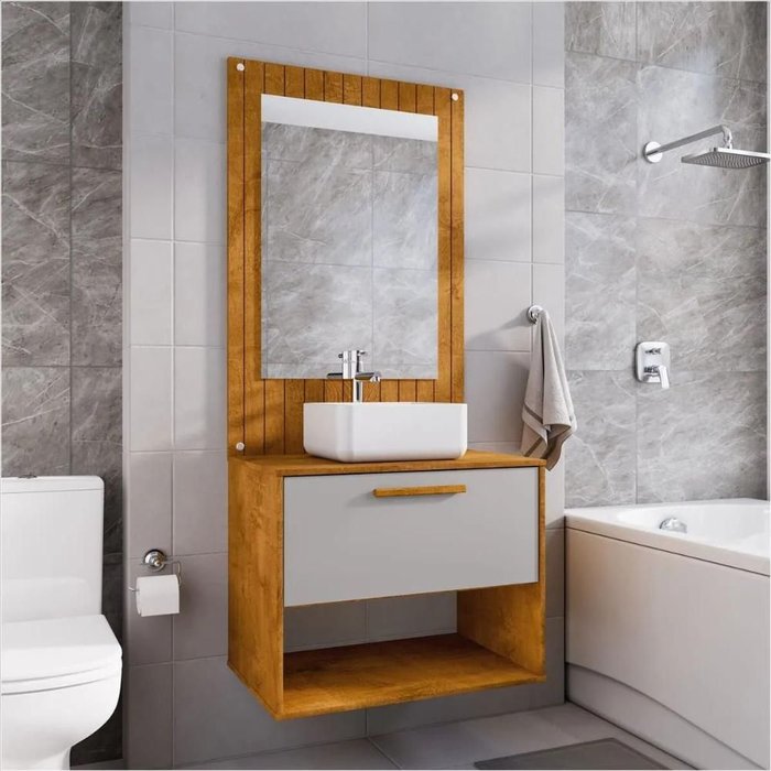 O Conjunto de Banheiro é perfeito para dar um toque de sofisticação ao seu ambiente. 1 Porta com Dobradiças Metálicas para maior resistência e fácil acesso.