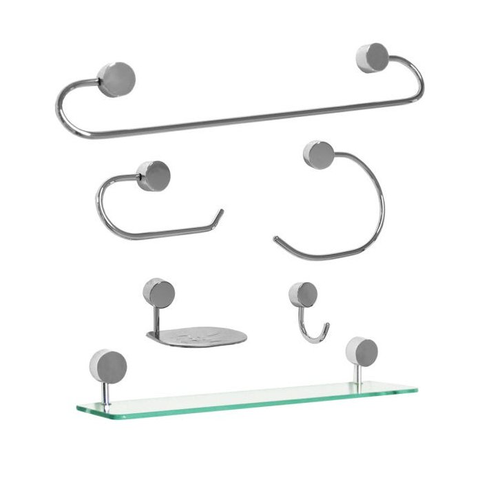 Kit para Banheiro Linha Class 6 peças Redondo Cromado com Porta-Shampoo de Vidro