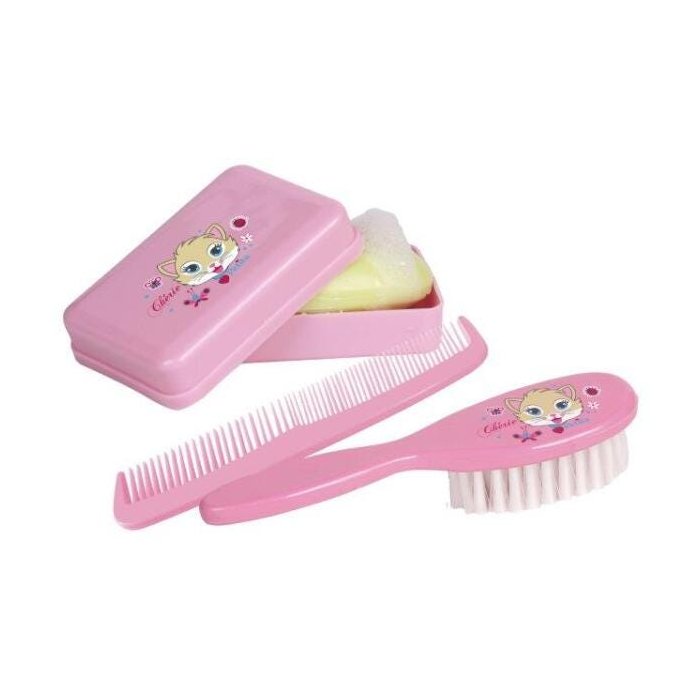 O Kit para Banho da Linha Premium Chérie da PETITA é composto por 01 pente, 01 escova e 01 saboneteira, feitos em polipropileno totalmente atóxico, livre de Bisfenol-A (BPA) e Ftalatos.